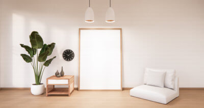 Empty White Wooden Wall On Wooden Floor Interior Design. 3D Rend